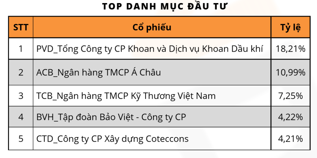 Lợi nhuận của quỹ mở VNDAF chủ yếu đến từ việc đầu tư vào các chứng khoán niêm yết trên thị trường chứng khoán Việt Nam, bao gồm: