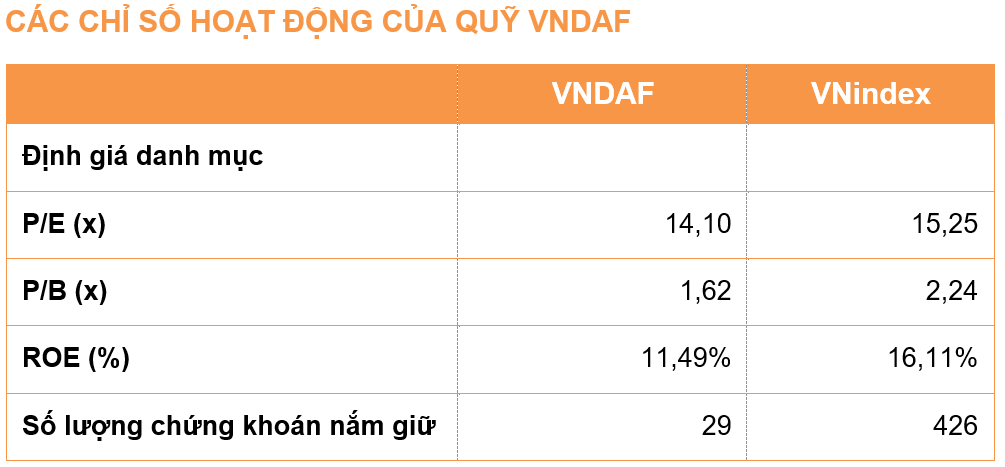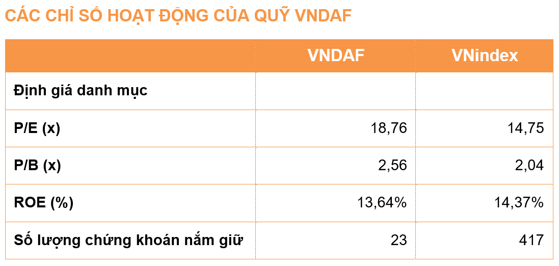 The profit of the VNDAF mainly comes from investing in listed securities on the Vietnamese stock market, including: