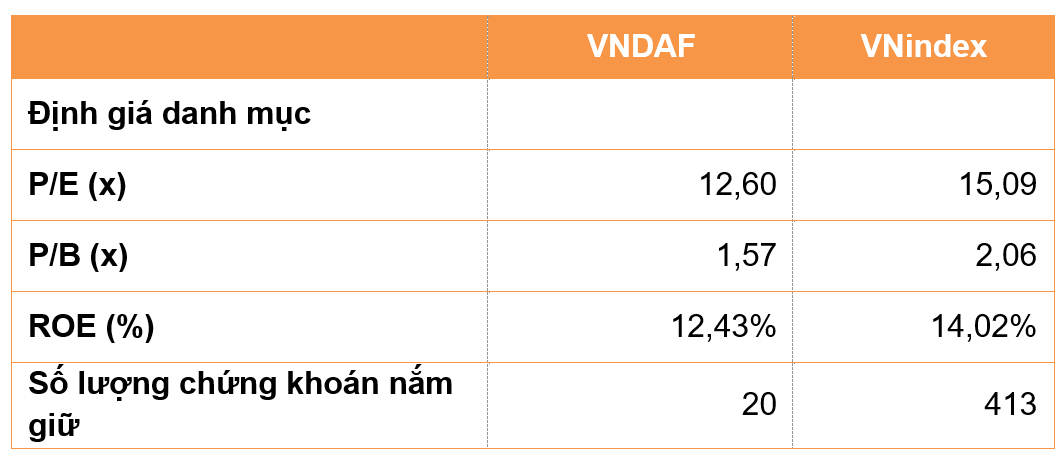 Lợi nhuận của quỹ mở VNDAF chủ yếu đến từ việc đầu tư vào các chứng khoán niêm yết trên thị trường chứng khoán Việt Nam, bao gồm: